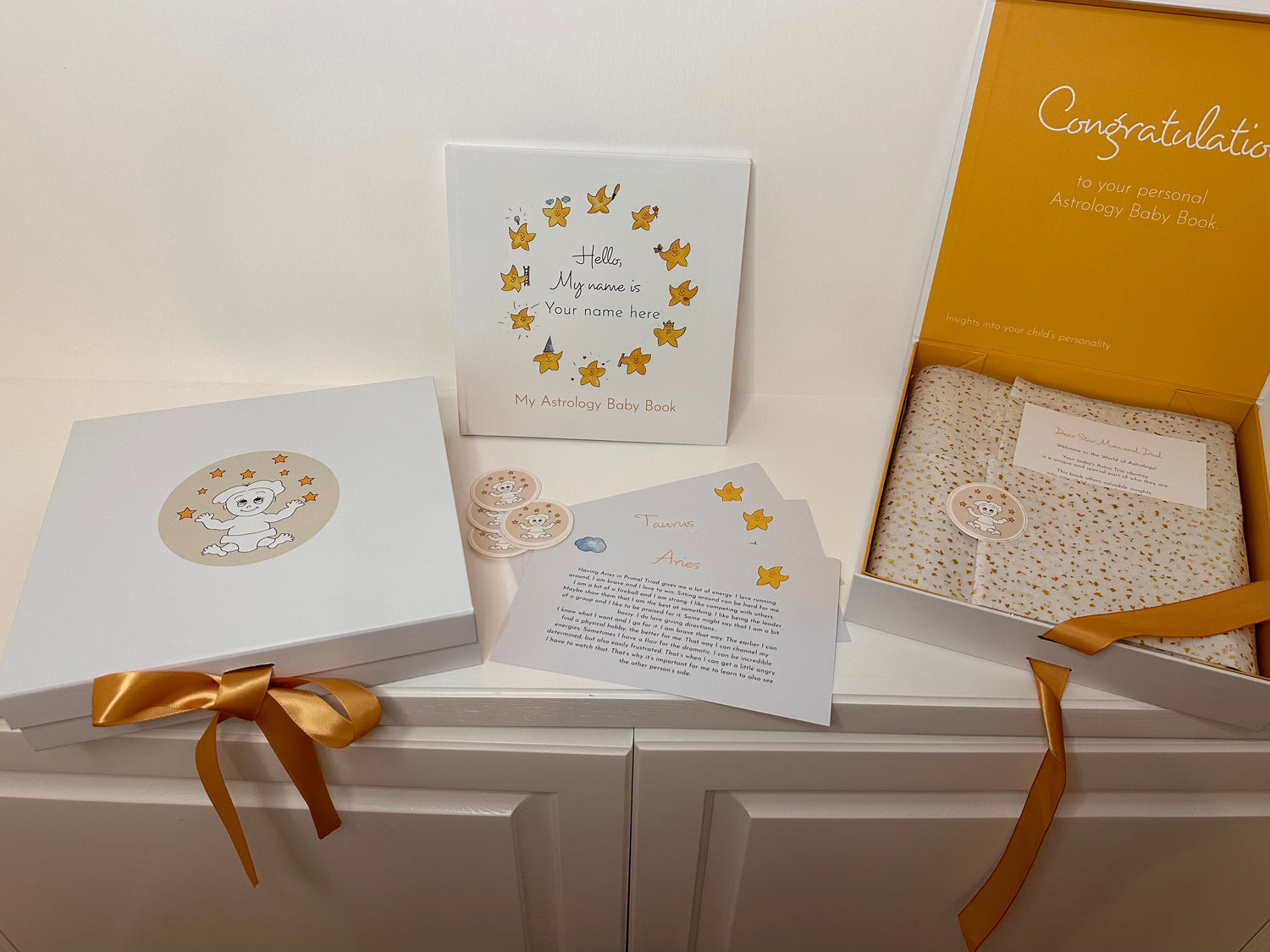 Give this truly unforgettable New Baby Astrology Gift Set, including our personalized astrology storybook, a custom zodiac onesie, a birth chart, and an in-depth eBook explaining the major planets and their aspects. Beautifully packaged in a custom gift box, it’s a meaningful and unique keepsake.